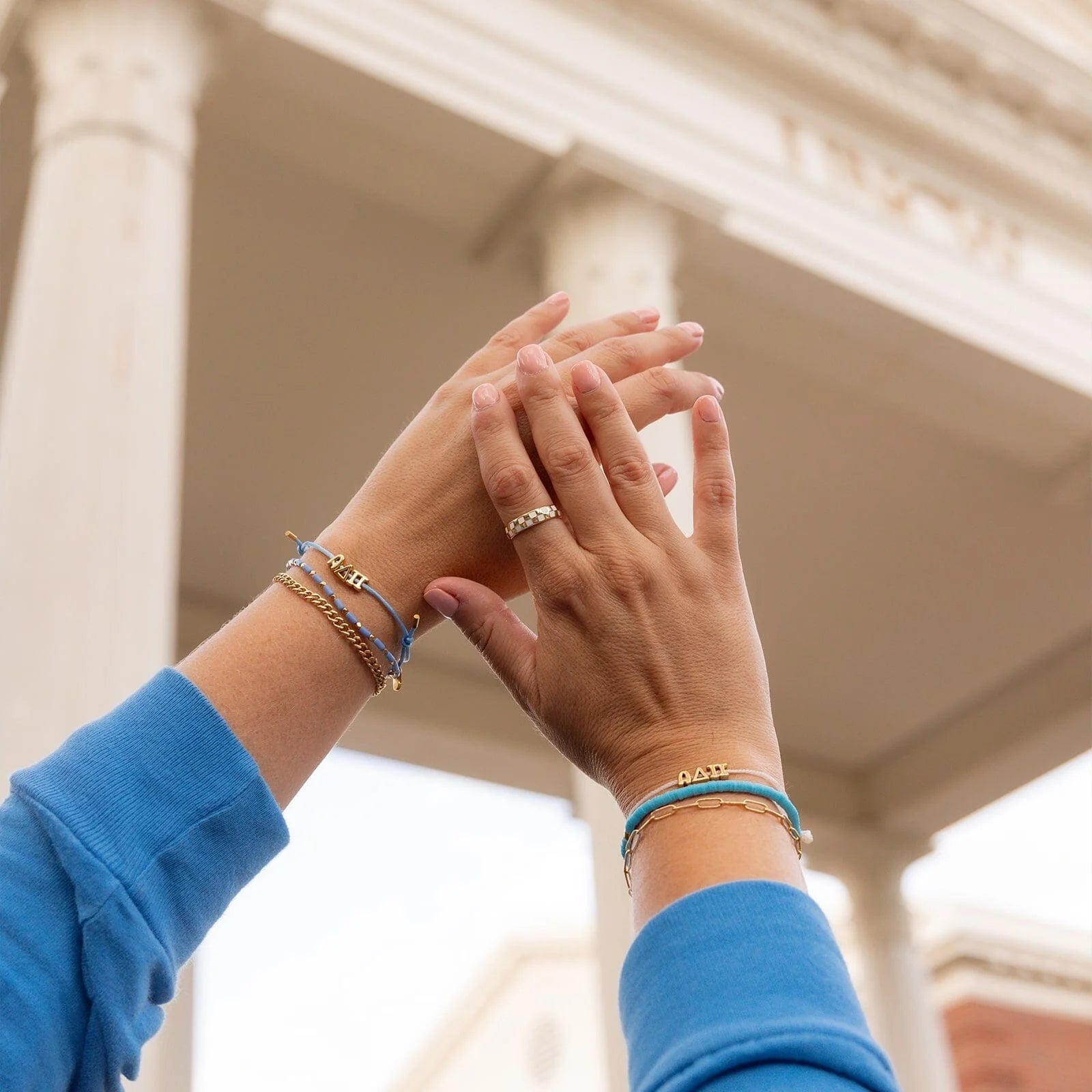 True blue for the true OGs 💙 Show off your ADPi pride in every shade of sisterhood with styles that stack, sparkle, and speak your love language (Greek, obviously). Whether you're repping on Bid Day, spoiling your Little, or just matching with your Big, these pieces bring the charm—literally.