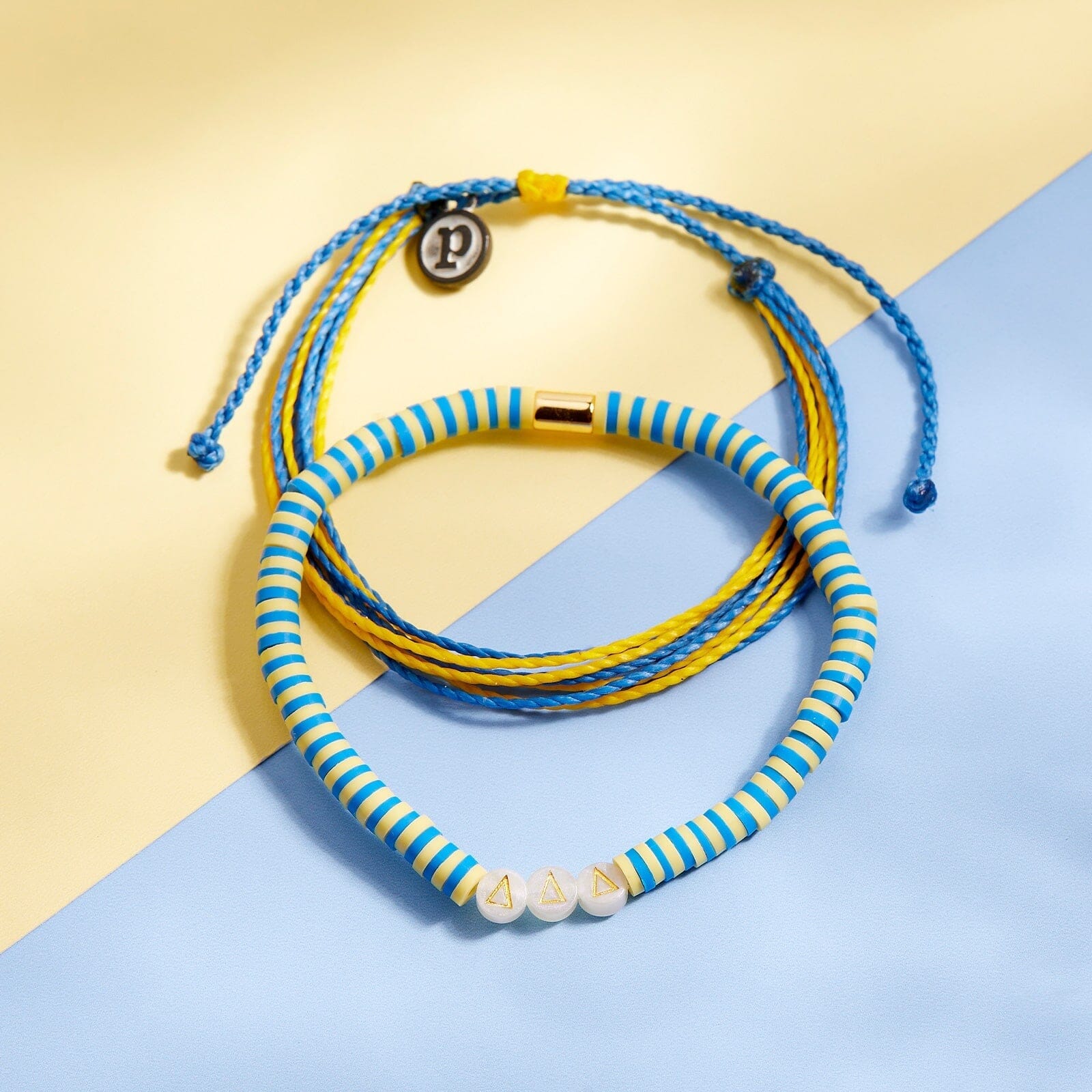 Three times the Delta, three times the charm 💙✨ The Delta Delta Delta collection brings all the good vibes—think sunny blues, golden finishes, and everyday-elevated pieces that were made for matching with your sisters. Whether you’re celebrating your Bid Day besties or just stacking up for class, these styles bring the perfect balance of fun, feminine, and full-on house pride.