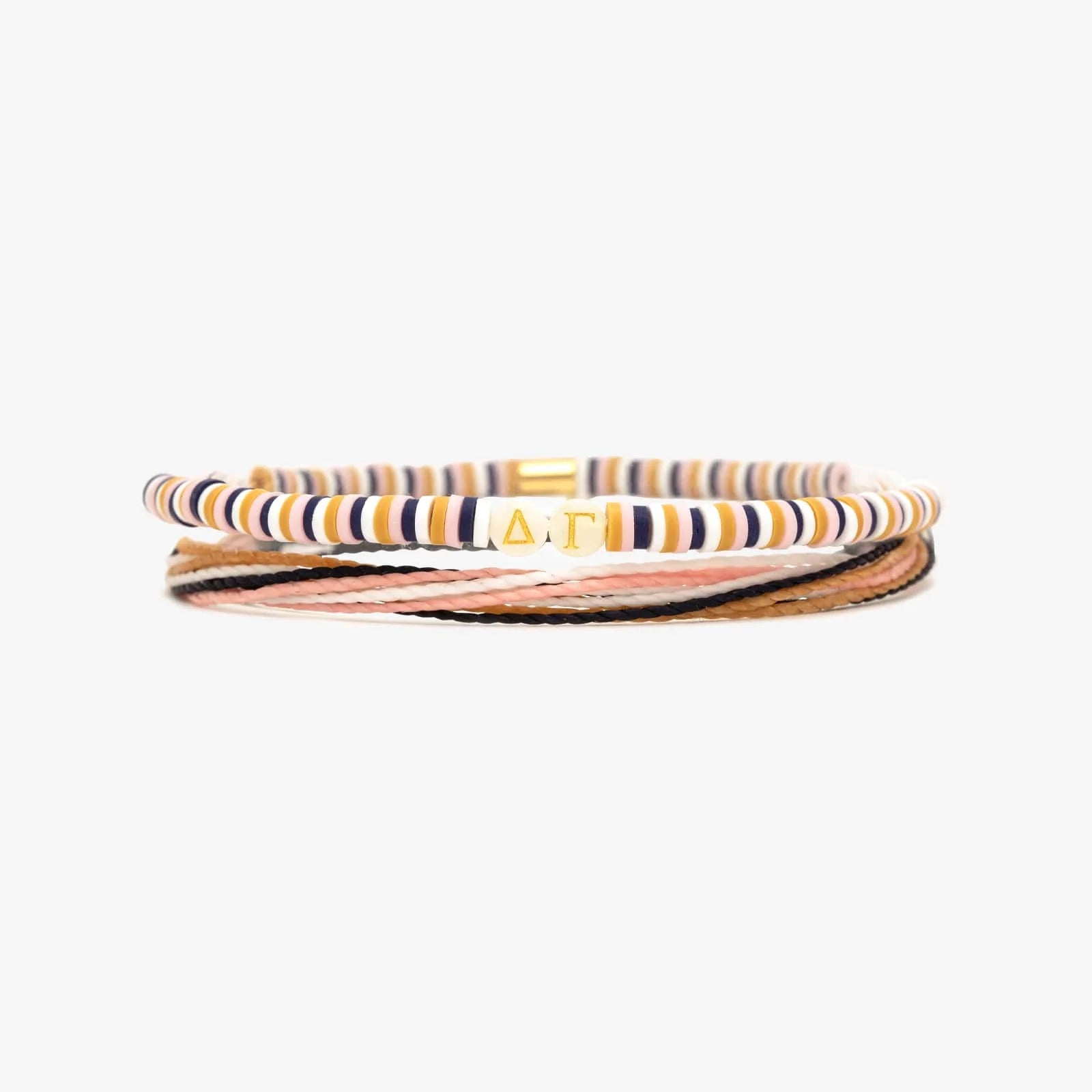 The Delta Gamma collection brings dreamy pinks, pearly whites, and golden touches together for stacks that speak fluent sisterhood. Whether you’re celebrating Bid Day, hyping up your Big, or just showing your DG pride, these styles are made to shine—just like you. Layer them up, gift them out, or keep them all (we won’t tell). Either way, they’re built for the girls who go Greek and never look back.