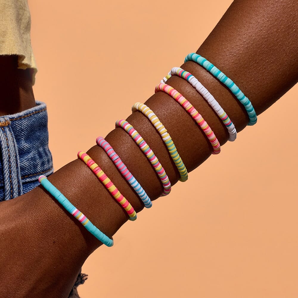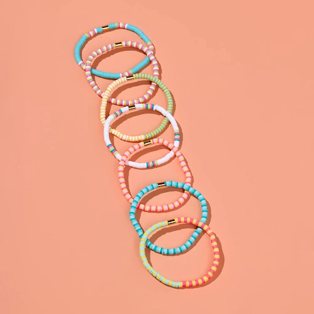 Our Fortune Beach Stretch Pack is the newest member of our Vacation Vibes collection! These bracelets feature a vibrant mix of colors that bring to mind the carefree spirit of beach days and ocean breezes. Made with a durable elastic core, they combine style and comfort, making them the perfect accessory for any laid-back look. Add a pop of color and coastal energy to your ensemble with this must-have set!