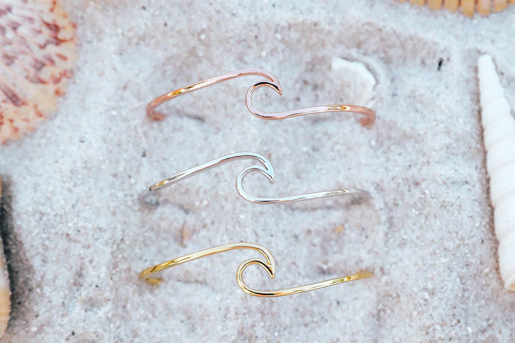 Our best-selling Wave style is back in bracelet form! These cuffs are plated to perfection so they catch the light from every angle. Get ready to bring those beachy vibes all. year. long. Available in both gold and silver these special edition cuffs are bound to go quick!