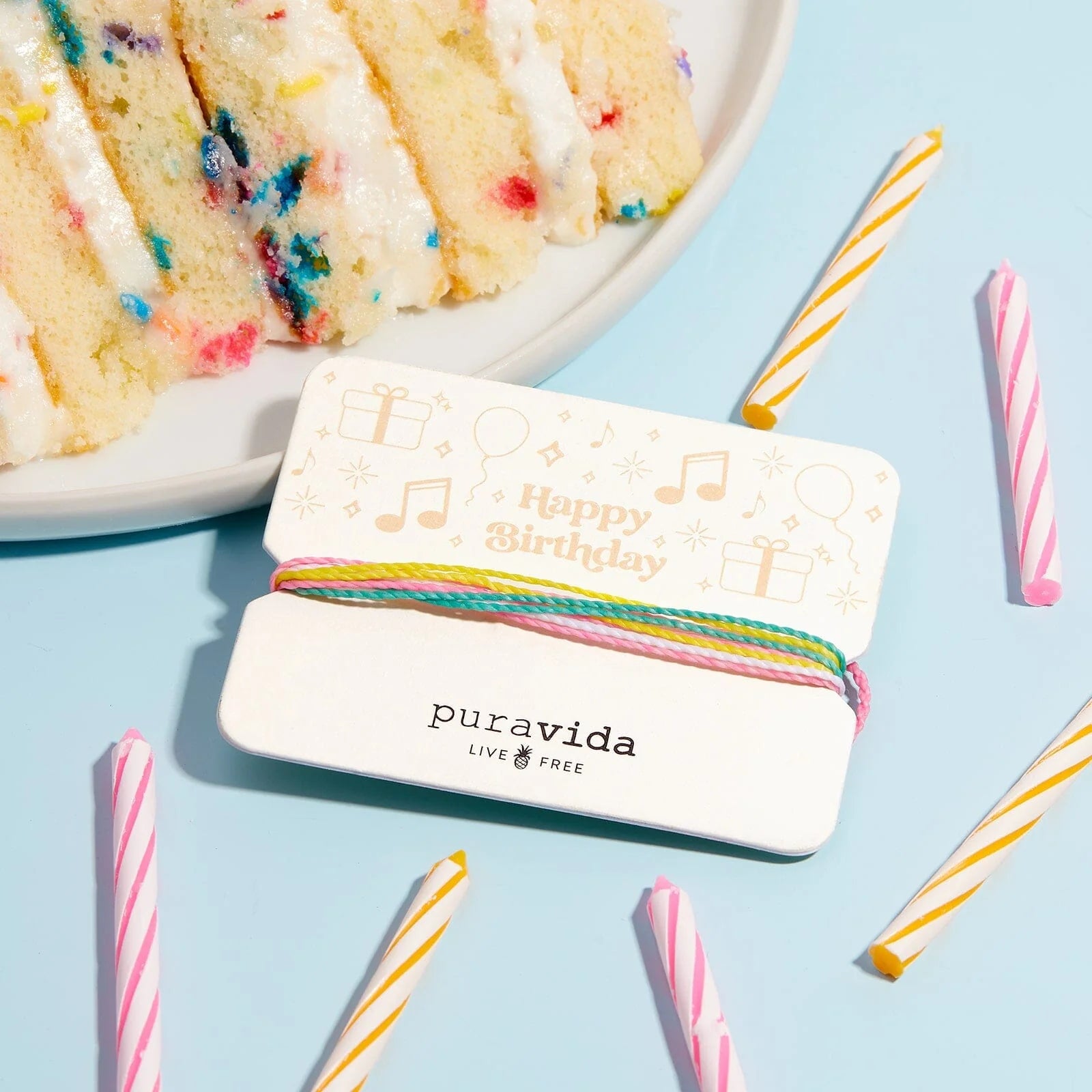 Say hello to the perfect gift to celebrate someone special on their big day! Our Happy Birthday Bracelet has adjustable string to ensure a comfortable fit for any wrist. Accompanied by an exclusive birthday card, this bracelet comes with a sprinkle of happiness!Waterproof