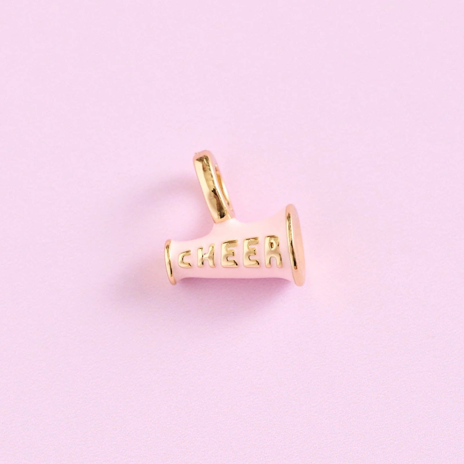 Bring the spirit with the Harper Cheer Megaphone Charm! With its glossy pink enamel, gold-plated stainless steel finish, and waterproof design, this charm is ready to shout out your style loud and clear.