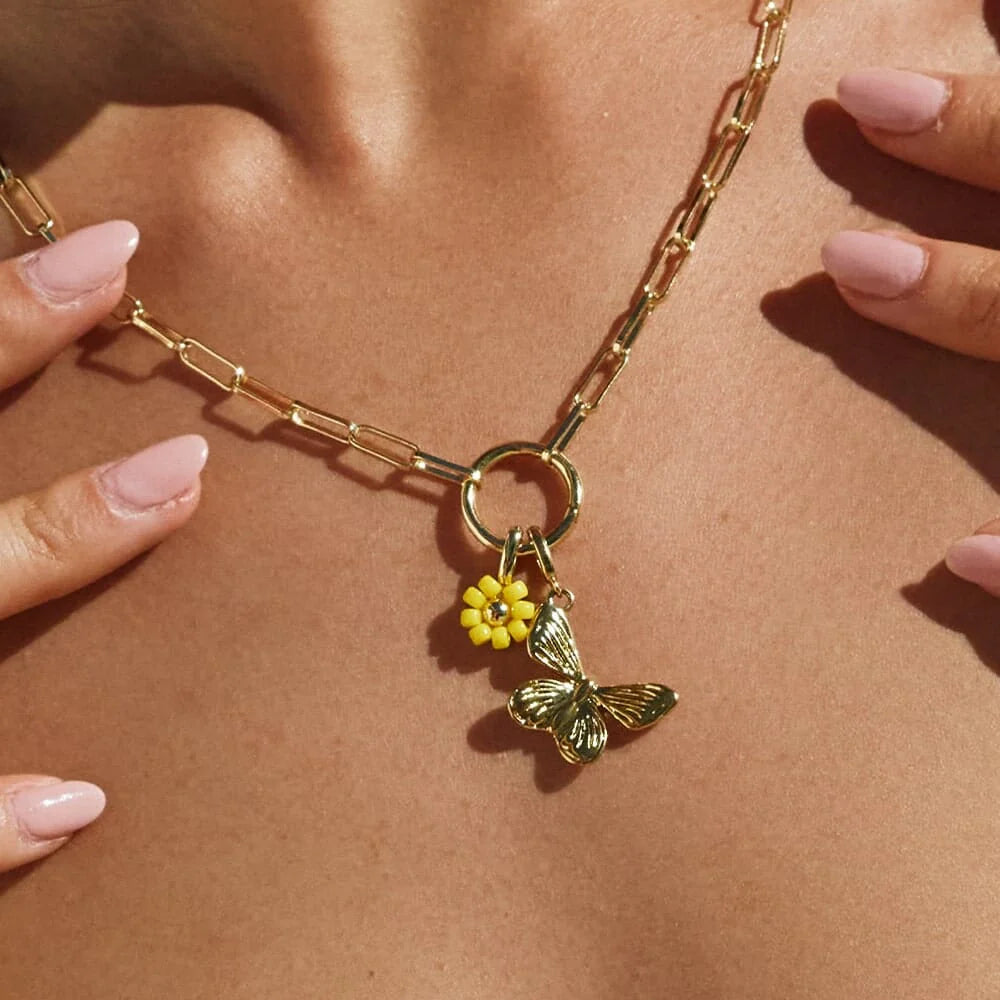 The Harper Woodstock Charm is a festival essential from our latest collection. Available in gold or silver, this charm features a seed bead flower design, adding a boho touch to your look. Wear it solo for a laid-back, carefree vibe or stack it with other Harper Charms to create a custom style that’s all your own. Designed to pair with any of our Harper Bases, the possibilities are endless for mixing, matching, and crafting a piece as unique as your festival spirit!
