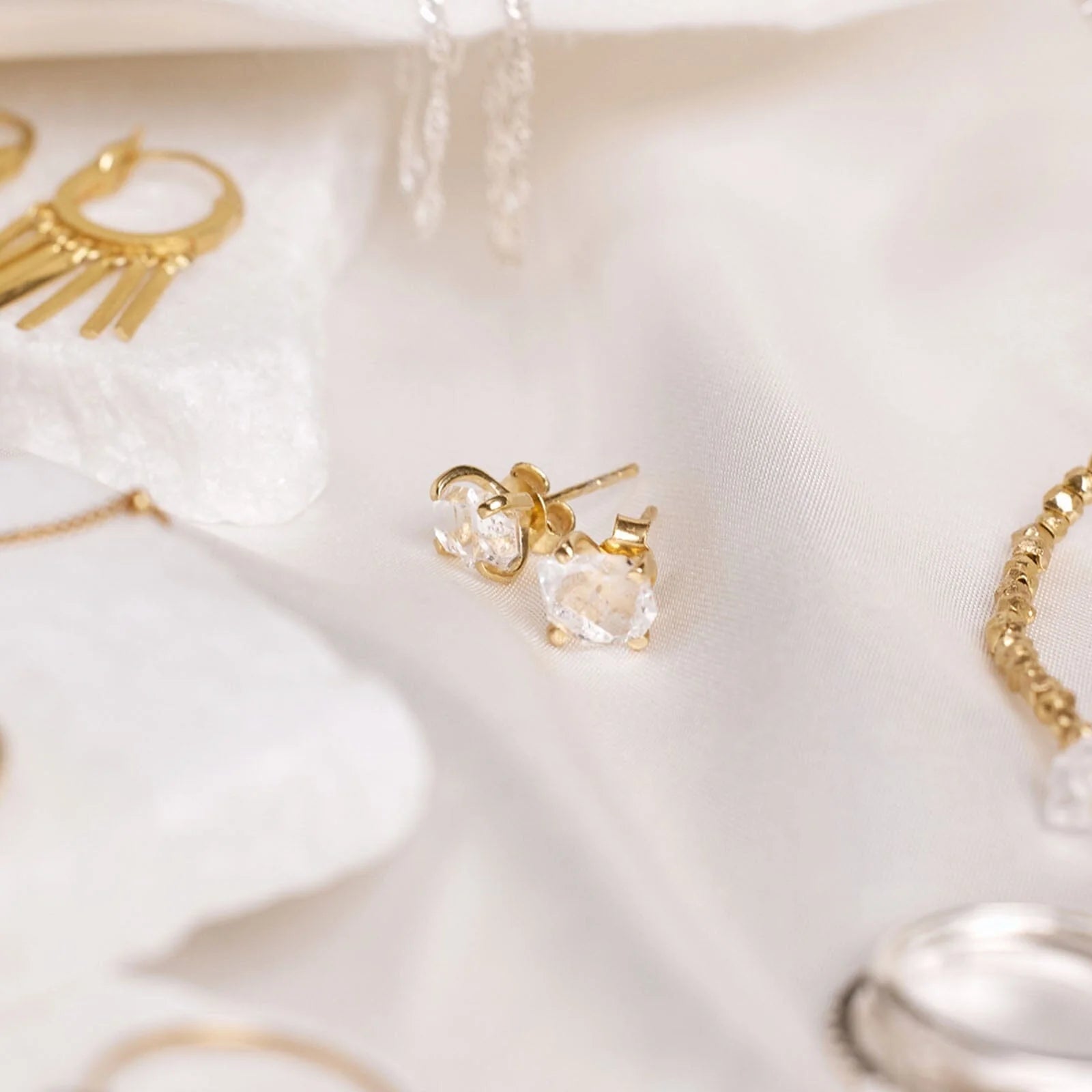 Perfect on their own or with your fave earring stack, these Herkimer Stud Earrings are a must-have! Made with 18K gold-plated sterling silver and a natural Herkimer Diamond, this forever-piece is sure to become a staple in your jewelry lineup for years to come.