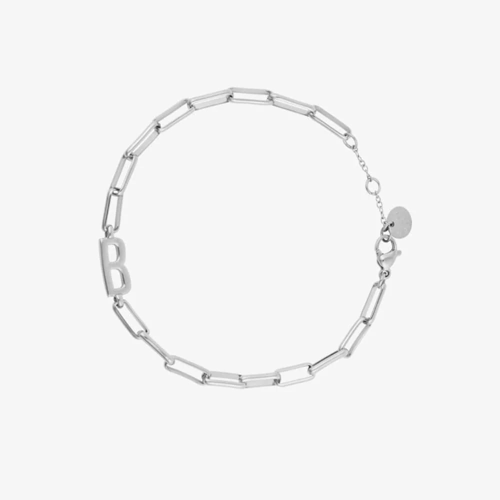 Say hey to your new everyday staple. This sleek paperclip chain bracelet features a bold gold or silver initial that’s totally you. Made 100% waterproof for nonstop wear, from sunrise swims to late-night hangs. Snag your own or gift one to your BFF—because nothing says “I got you” like an initial that means something.Waterproof