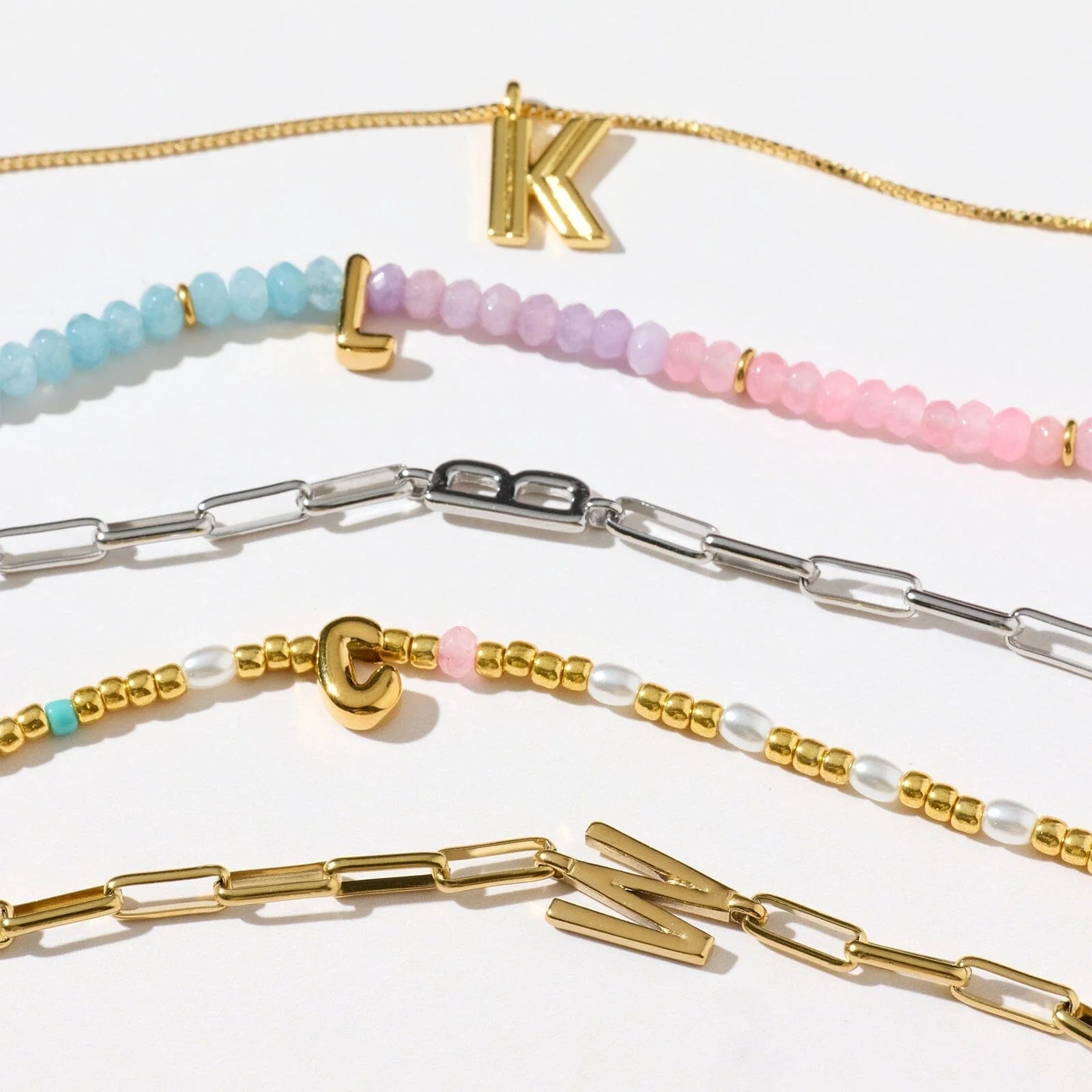 Minimal, bold, and totally personal. The Initial Paperclip Chain Choker features your fave letter on a waterproof paperclip-style chain that layers like a dream and shines even brighter. Wear it solo or stack it up—either way, it’s a whole moment.Waterproof