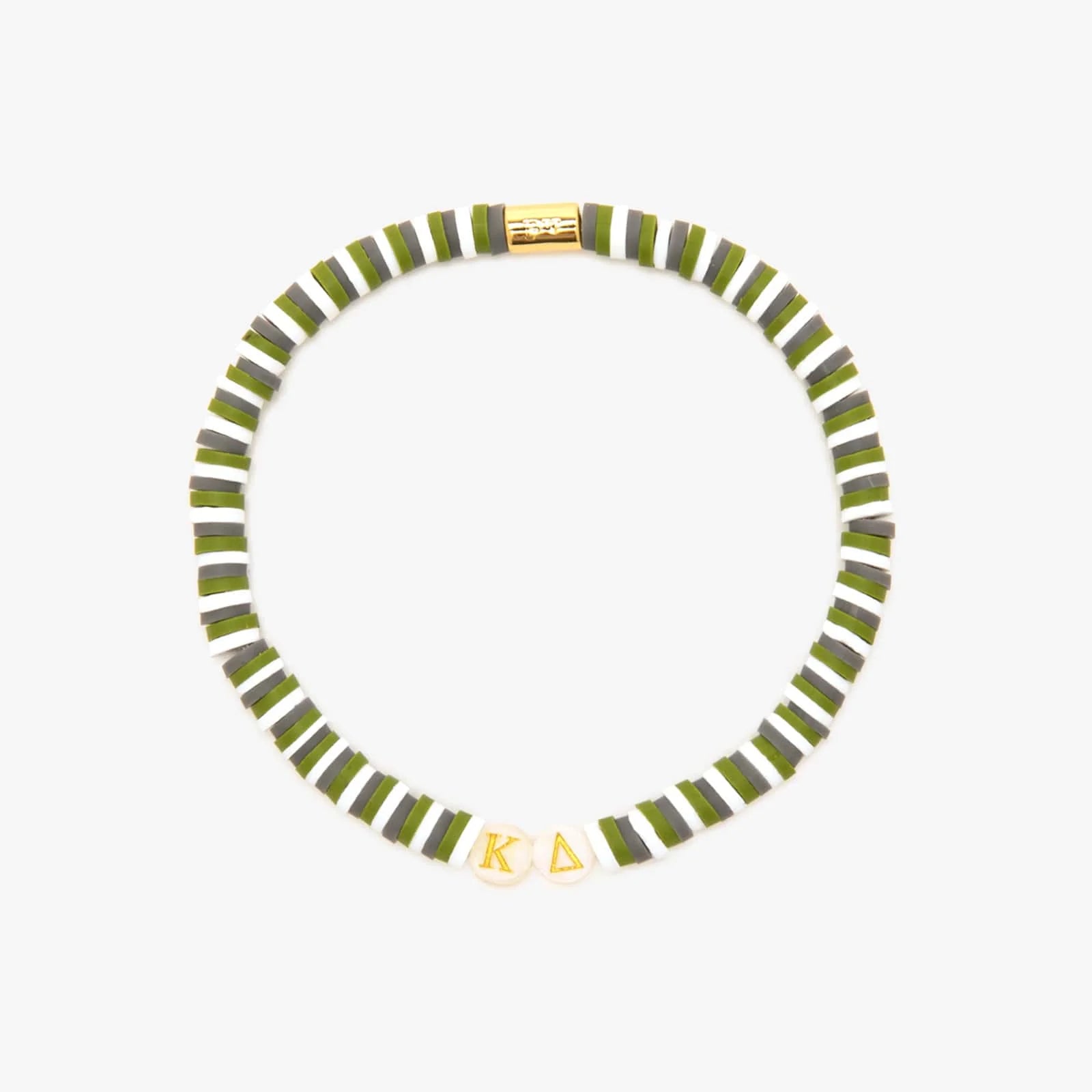 The Kappa Delta collection brings together soft greens, creamy whites, and golden details for stacks that feel classic and cool. Whether you’re celebrating a new sister, leveling up your rush ‘fit, or just repping KD on the daily, these pieces are here for it. Giftable, layerable, and made to last—because true friendship never fades.