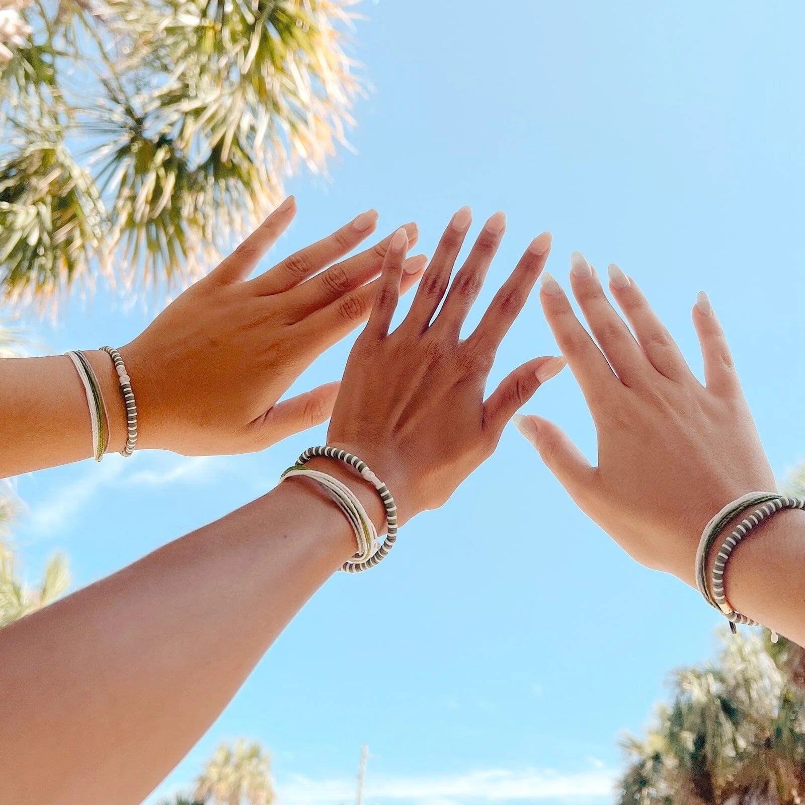 - Made with colorful vinyl disc beads on a durable elastic cord that stretches to fit most wrists