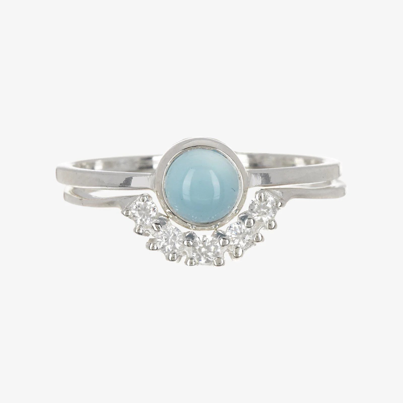 If dainty and delicate is your style, then we def. have the piece for you! Our Nesting Ring includes a duo of super-pretty styles and comes in two finishes - silver with a chalcedony stone or rose gold with a moonstone. One ring is made with a 100% genuine gemstone, and the other features itty bitty, sparkly stones.
