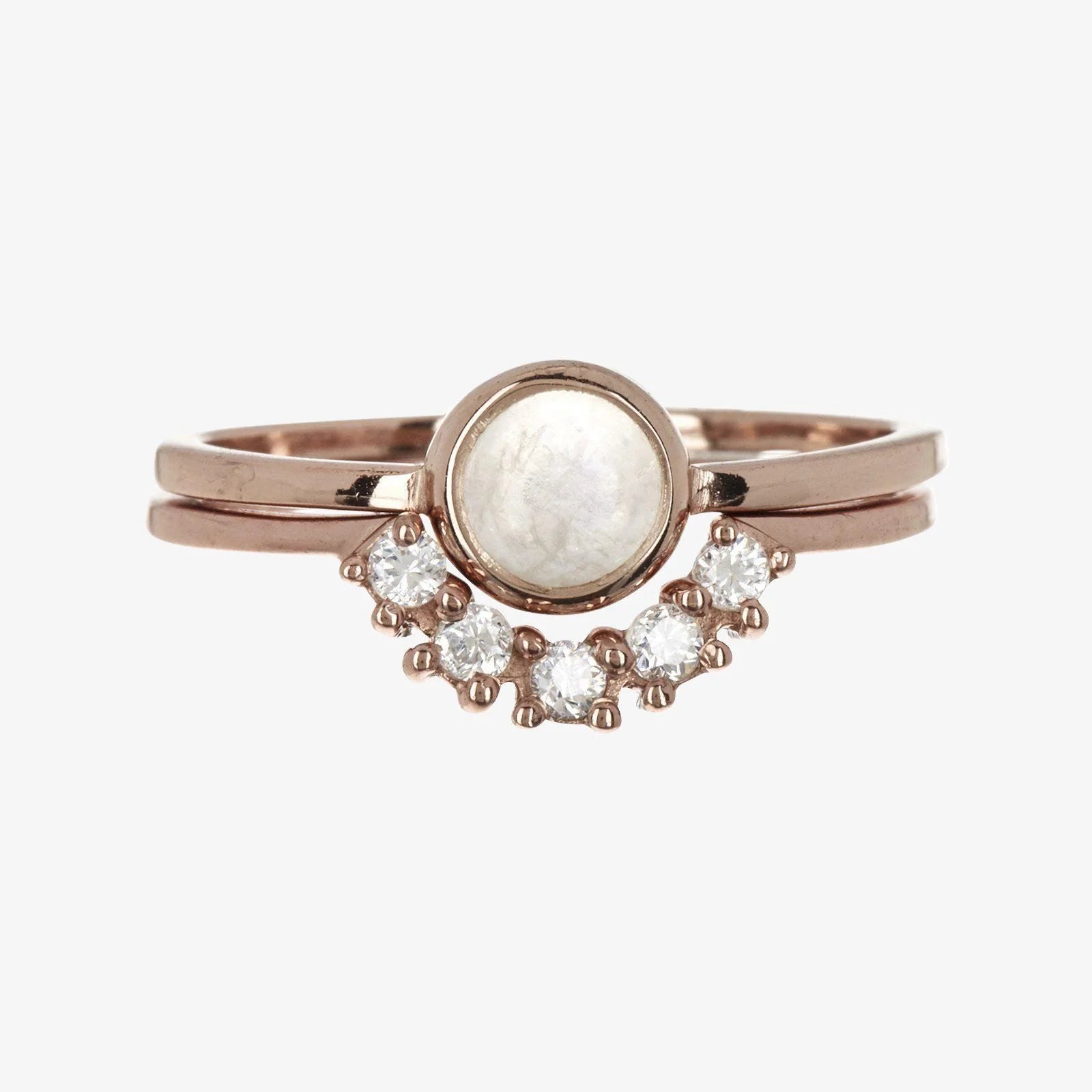 - Rose Gold: .925 sterling silver with rose gold plating and moonstone and cubic zirconia stones
