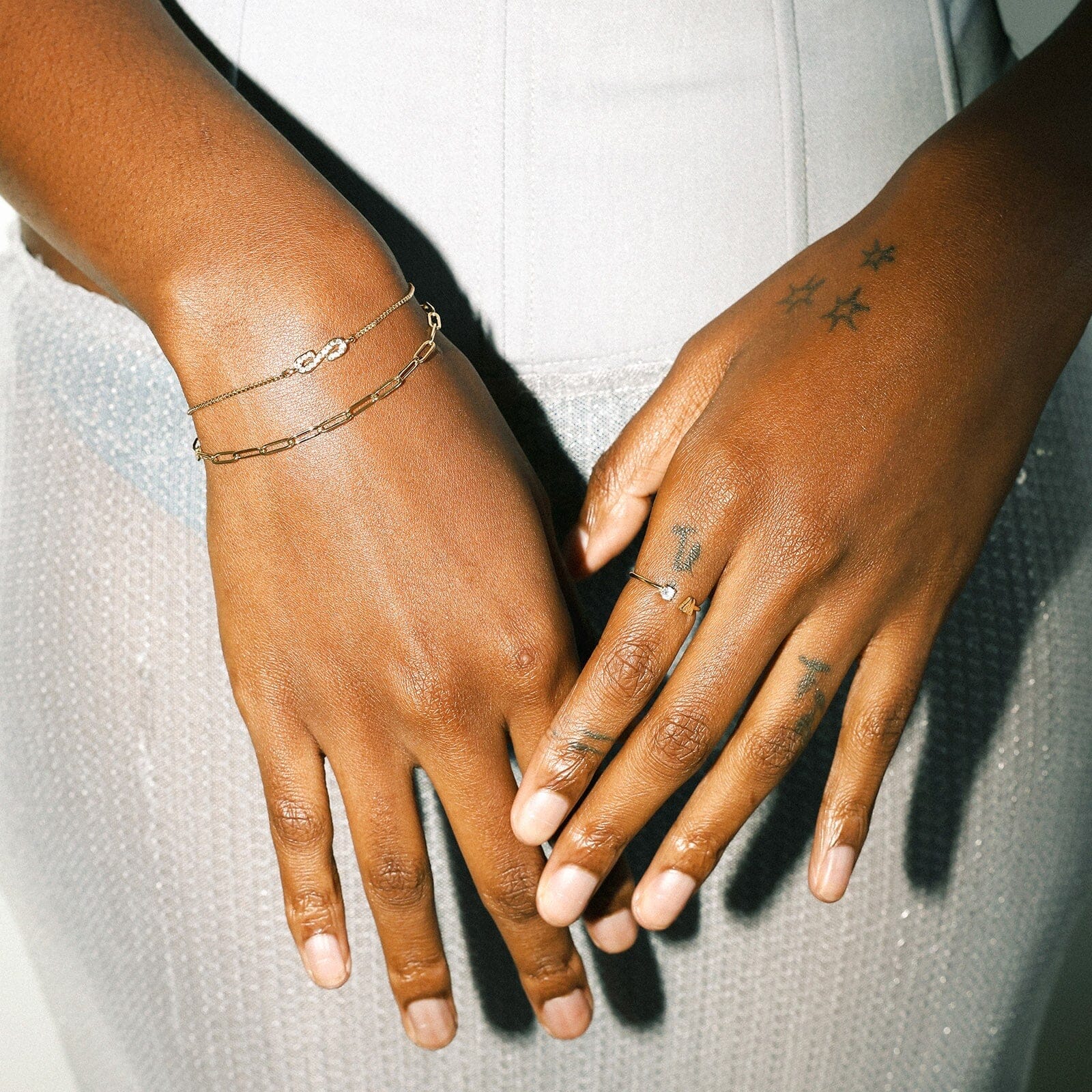 Shine a little brighter this season with our Pavé Initial Chain Bracelet — a personal touch that catches every light. This dainty gold chain features a sparkling pavé letter charm that feels both timeless and totally giftable. It’s the perfect mix of everyday shine and holiday glam, made to layer, love, and live in long after the parties end. Handcrafted with care and made for meaningful gifting, this bracelet is an effortless way to celebrate your story — or someone special’s.