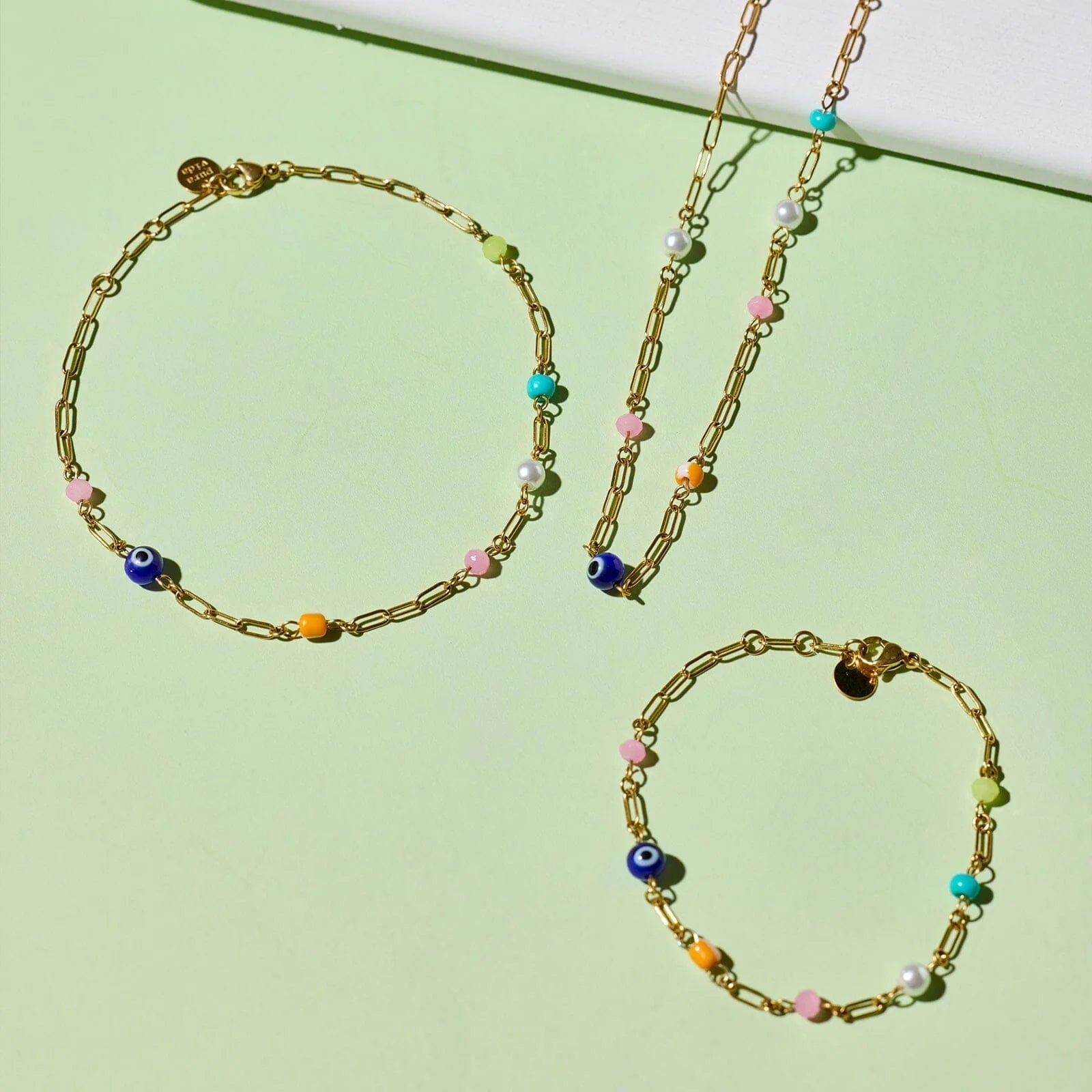 - High-quality stainless steel, with ultra-durable PVD gold plating and assorted beads