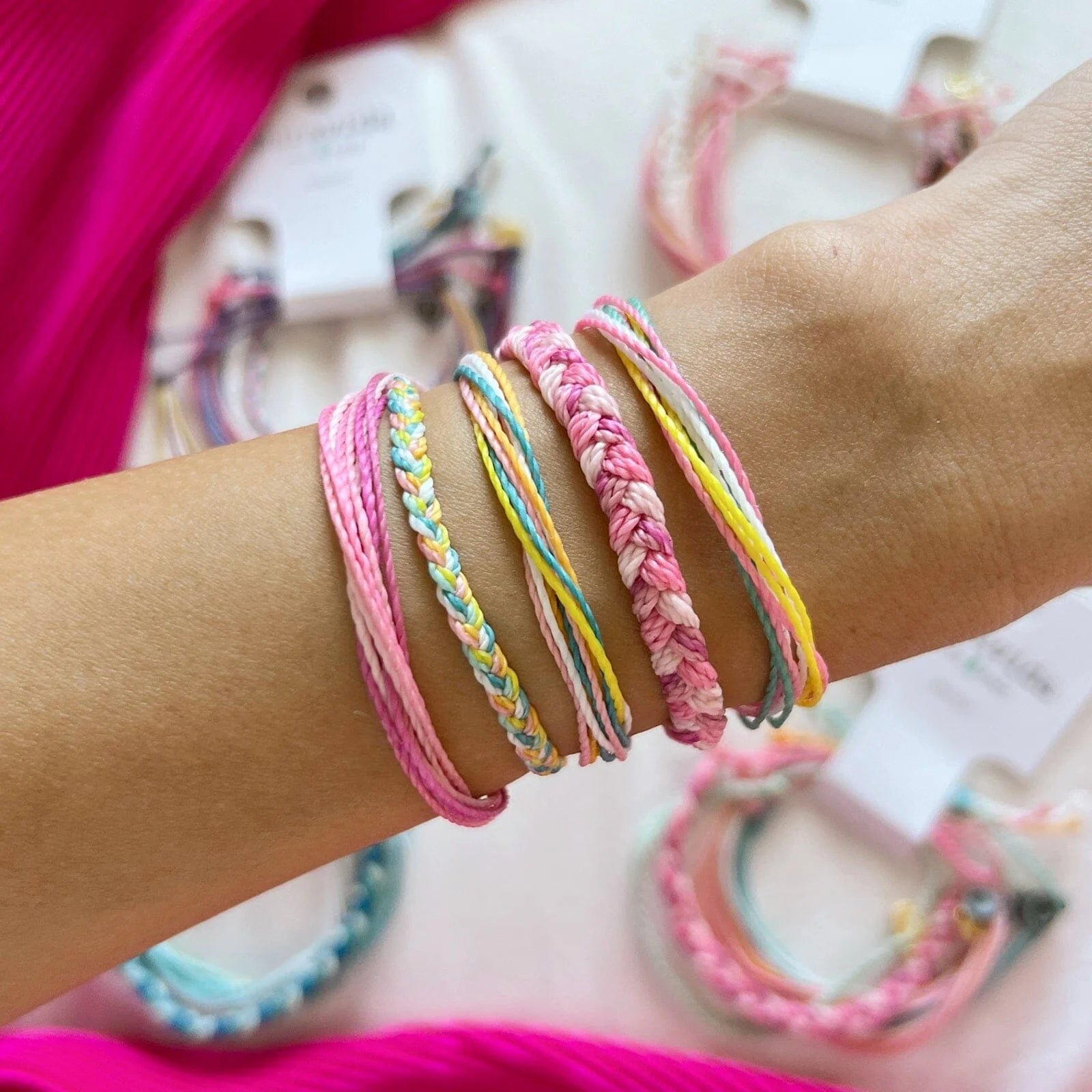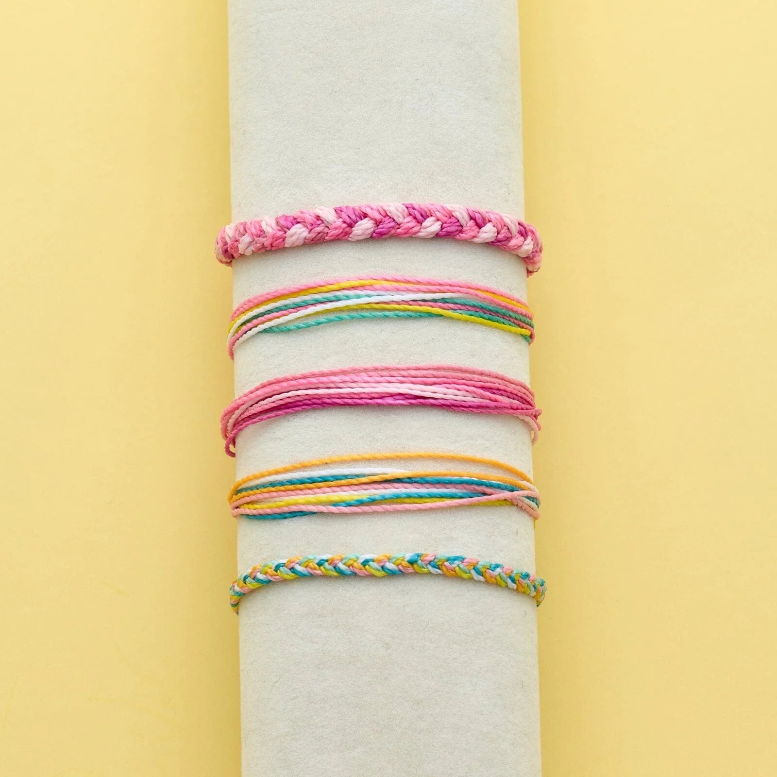 Save 35% on bracelets by purchasing our Sherbert Dreams Friendship 5 Pack ($46 value), featuring 5 of our top selling original and braided bracelets! Wear them all together, mix and match your favorite combinations or share with a friend. Every bracelet is unique and hand-made therefore a slight variation in color combination may occur.Waterproof