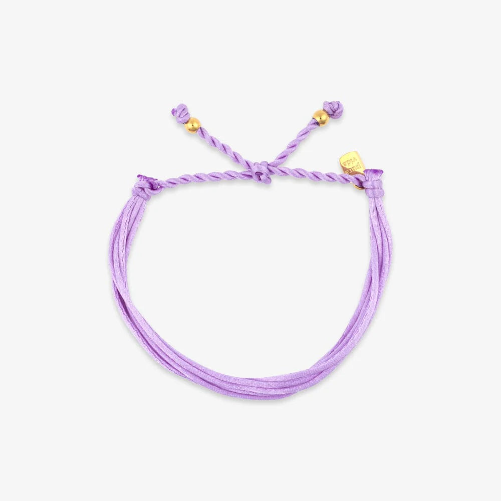 A sleek twist on a classic. The Silky Friendship Bracelet is made with soft, satin-like string and finished with a gold-plated charm tag and adjustable pull-tie closure. Available in dreamy solid colors to match your mood (or your stack). Waterproof, lightweight, and made to wear on repeat.