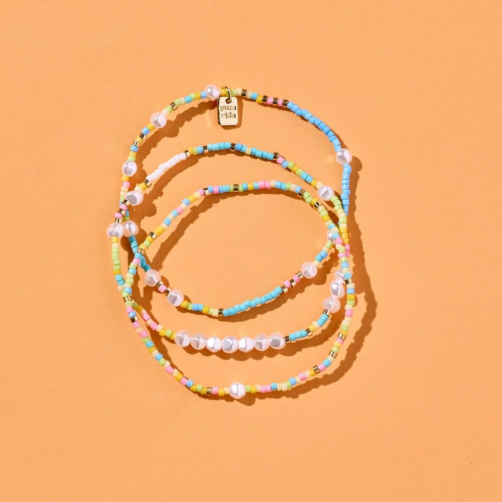 Step into the spotlight with the Stage Lights Stretch Bracelet 3 Pack. This colorful trio of bracelets is all about bringing that festival glow to your wrist. Featuring bold, bright colors and a comfy stretch fit, these bracelets are made to move with you from sunrise to sunset. Perfect for layering, stacking, or wearing solo, each bracelet adds a playful pop of color and effortless cool to any outfit.