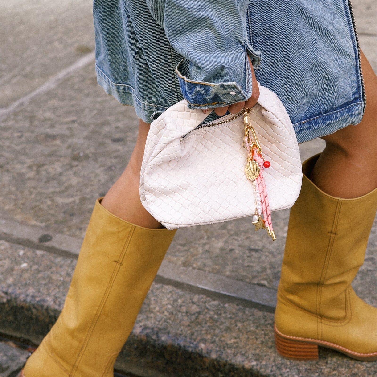 The Star Cici Bag Charm combines pink-and-white cord with freshwater pearl-inspired beads and a golden star for a charm that’s equal parts dreamy and bold. Clip this purse charm onto your tote, backpack, or crossbody to turn any bag into the star of the show. Stack it with other Pura Vida bag charms or let it sparkle solo — either way, this cute bag accessory is ready to shine bright.