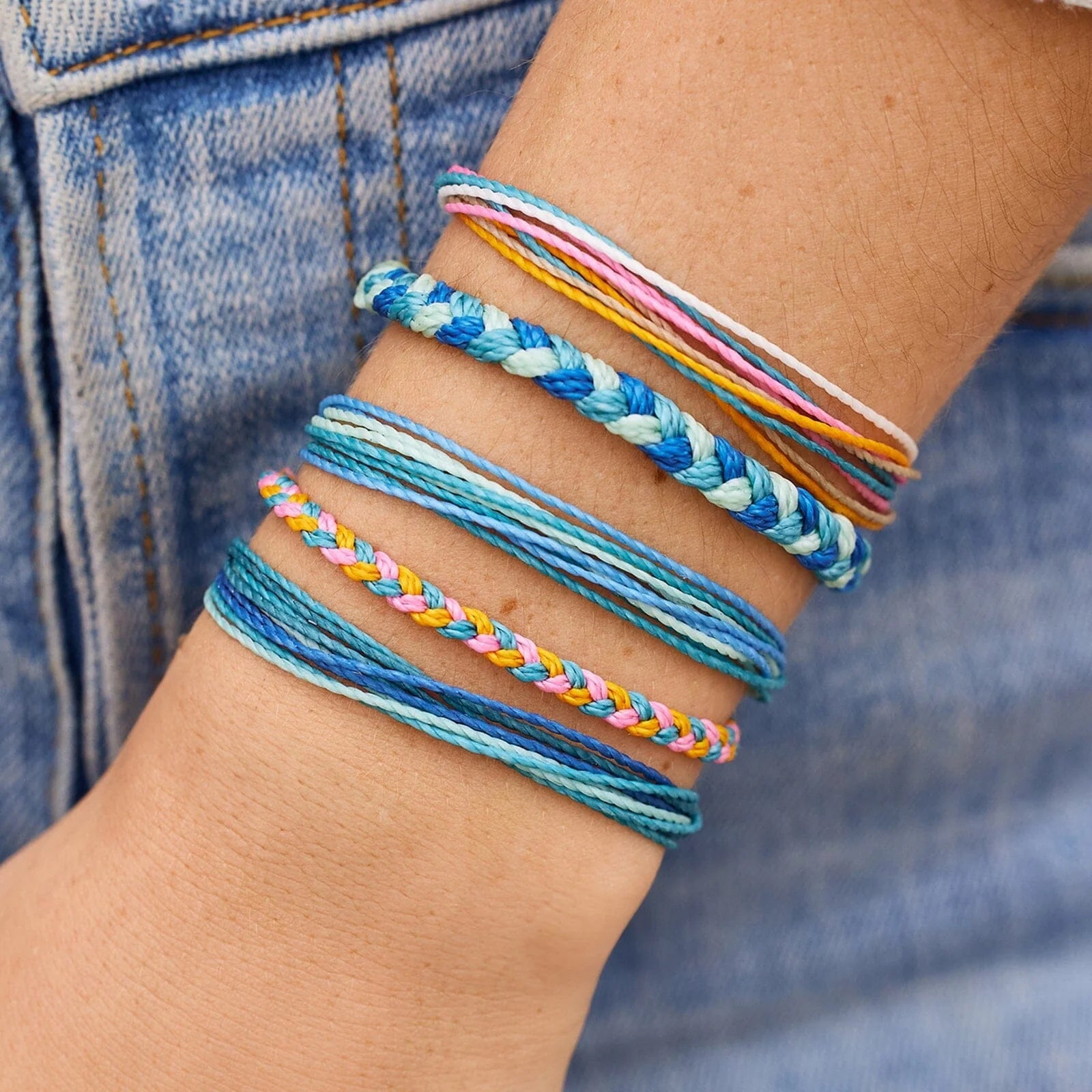 Save 35% on bracelets by purchasing our Sunkisssed Seas Friendship 5 Pack ($46 value), featuring 5 of our top selling original and braided bracelets! Wear them all together, mix and match your favorite combinations or share with a friend. Every bracelet is unique and hand-made therefore a slight variation in color combination may occur.