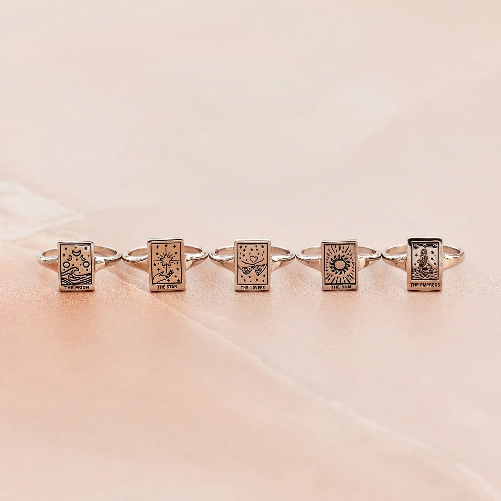 What do the cards have in store?? Let our Tarot Card Ring tell you! These boho beauties feature three of the most powerful cards in the deck: Choose from the Lover, signifying finding harmony within yourself; the Star, symbolizing inspiration and renewed optimism; the Sun, foretelling good fortune and happiness; the Moon, representing intuition and imagination; and the Empress, symbolizing femininity and creative expression. (Or play your cards right and get all five!).